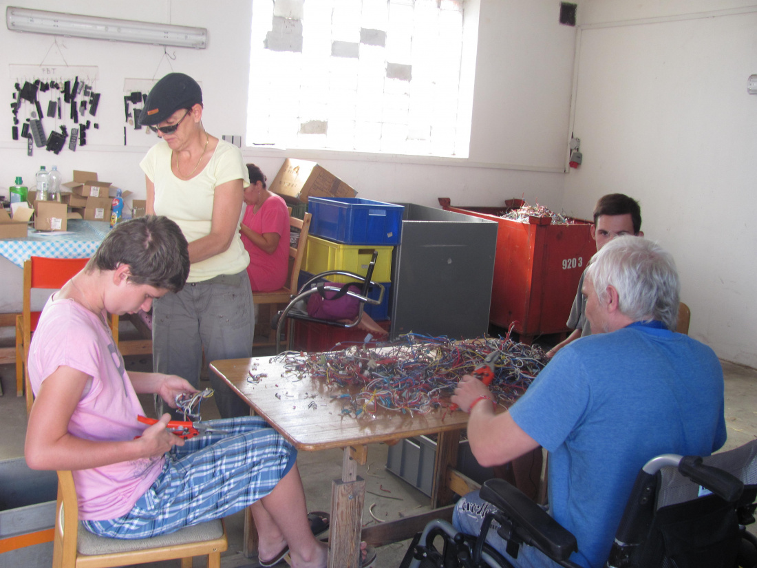 V provozu Dílny se zaměstnanci věnují v převážné míře drobným montážním pracem - zpracování a třídění drobného elektroodpadu. Doplňkově přijímáme zakázky na výrobu jednoduchých propagačních předmětů dle konkrétních požadavků zákazníka.