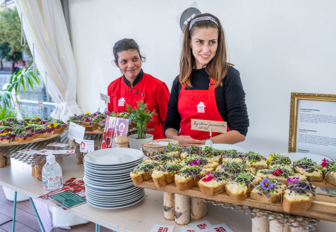 Připravujeme chutné, rostlinné a cenově dostupné pohoštění pro akce. Zaměstnáváme ženy bez domova, které se tak mohou zvednout z obtížné situace. Využíváme potravinové přebytky a hlásíme se k principům sociálního podnikání., Zajišťujeme kompletní cateringové služby pro různé typy akcí - firemní akce, večírky, snídaně, konference, rauty, svatby i pravidelnou dovážku obědů. Nabízíme rostlinné menu (sladké, slané, teplé, studené, jídla o několika chodech i drobné občerstvení), podáváme fair trade kávu, čaj, domácí nealkoholické limonády a šťávy a limonády Tátův sad. Servírujeme v ekologickém nádobí na jedno použití. Catering nabízíme bez obsluhy i s obsluhou Kuchařek bez domova.