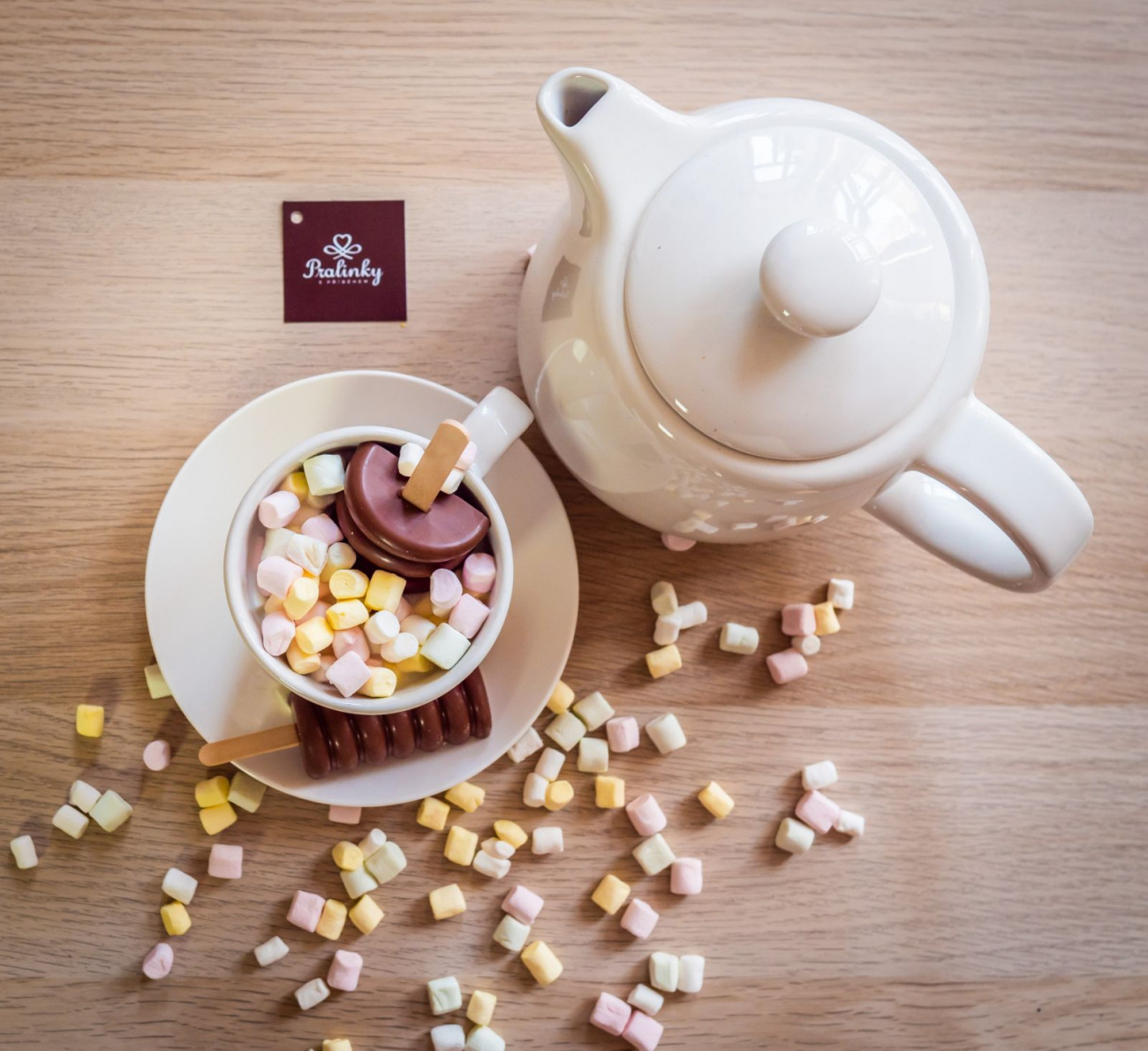 Ve výrobně pralinek vzniká čokoládové potěšení pro všechny mlsouny. Pralinky s příběhem jsou vyrobeny z poctivé čokolády obsahující 64 % kakaa a na výběr je z několika oblíbených náplní, jako jsou nugátový, pistáciový, karamelový nebo lískooříškový krém. V nabídce jsou také čokolády zdobené a ochucené sušeným či kandovaným ovocem nebo oříšky. Pracovníci pralinkárny všechny produkty ručně balí do atraktivních designových balíčků a krabiček. Klienty tak trochu rozmazlují a vymýšlí pro ně neustále něco nového dle jejich specifických požadavků.