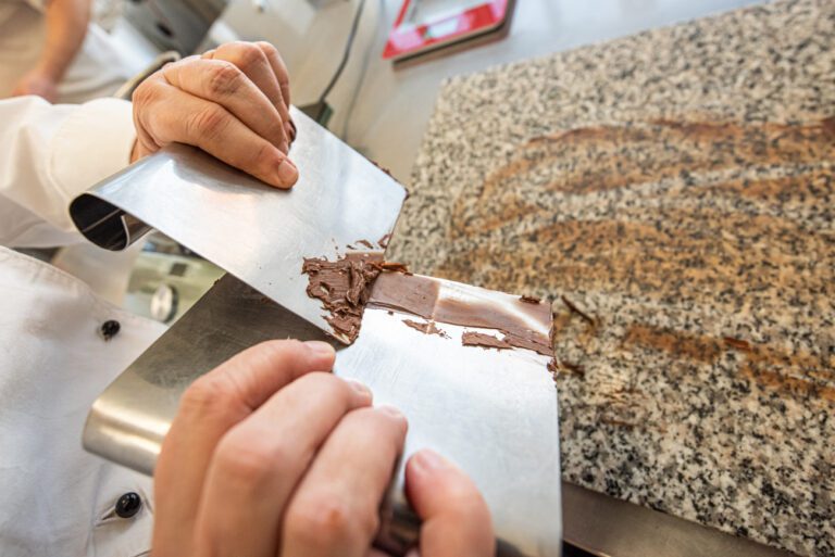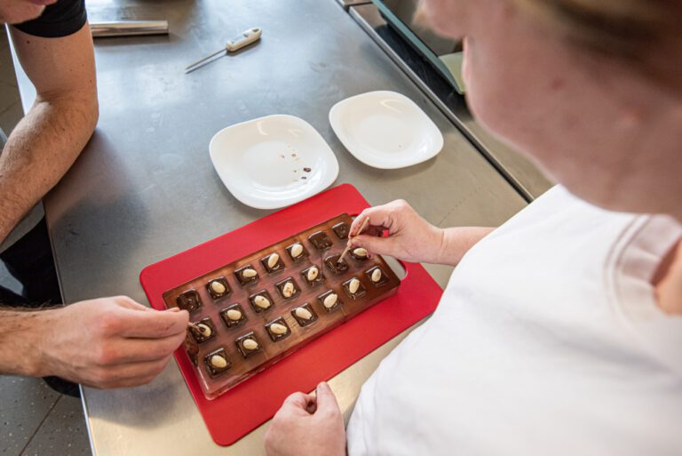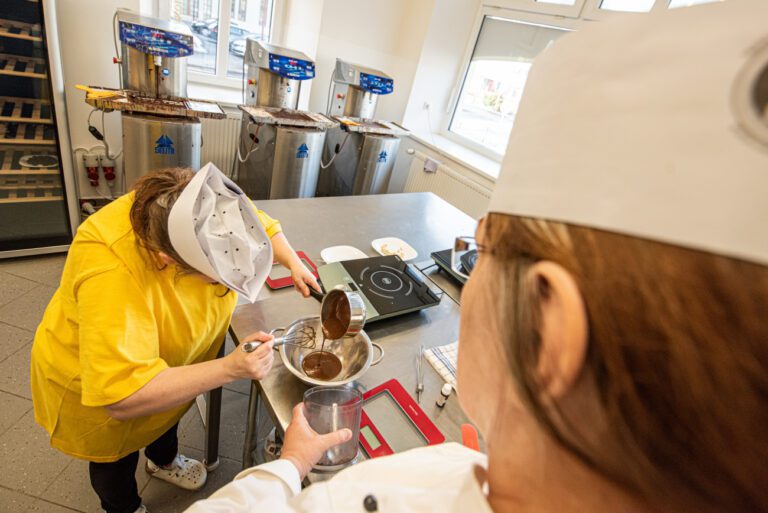 Ve výrobě čokolády nic netajíme, skutečně vůbec nic. Přesvědčit se o tom může každý na vlastní oči přímo u nás v Krásné Lípě. Můžete sledovat, jak z tekoucí čokolády vznikají krásné bonbony nebo tabulky čokolády. Můžete u nás strávit pozorováním výroby klidně celý den, přijít hned ráno a odejít klidně až večer. Věřím, že to nebude rozhodně ztracený čas, jelikož budete zaujatě sledovat ladné pohyby všech špachtlí, hrnců, vařeček, našich kolegyň a kolegů. A kdo by se nechtěl jen dívat, může si přijít po předchozím objednání a domluvě výrobu vyzkoušet do naší čokoládové dílny. Dokážeme zorganizovat čokoládový workshop postavený na míru, kde si účastníci zhotoví vlastní plněné bonbony, tabulky či jiné čokoládové výrobky. Pokud byste chtěli zažít ještě víc, můžete si vyzkoušet celý den s čokoládou. Během něj se dozvíte vše o temperaci, složení čokolády, kvalitě surovin a vyzkoušíte si samozřejmě i samotnou výrobu. A je jasné, že všechny vlastnoručně vyrobené skvělé bonbony a tabulky čokolády si odnesete s sebou.