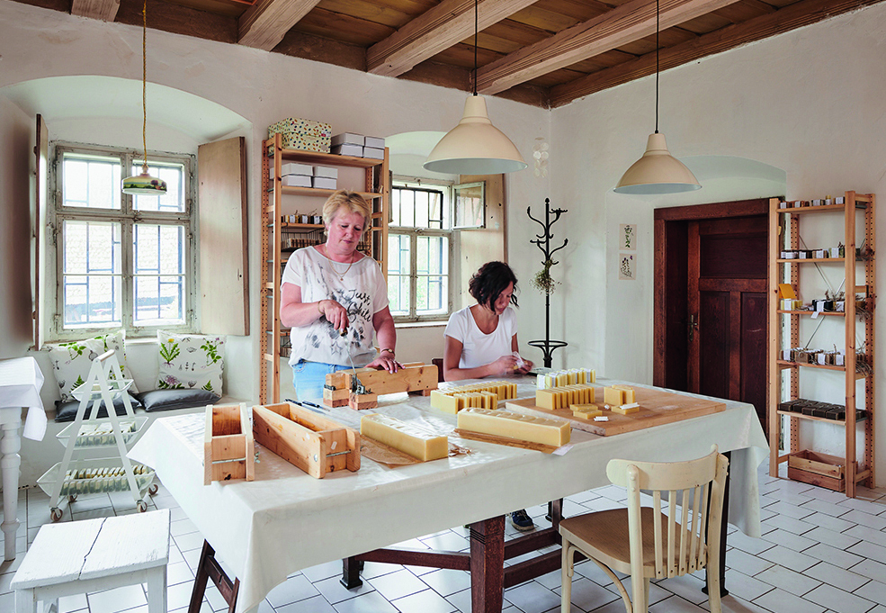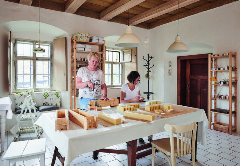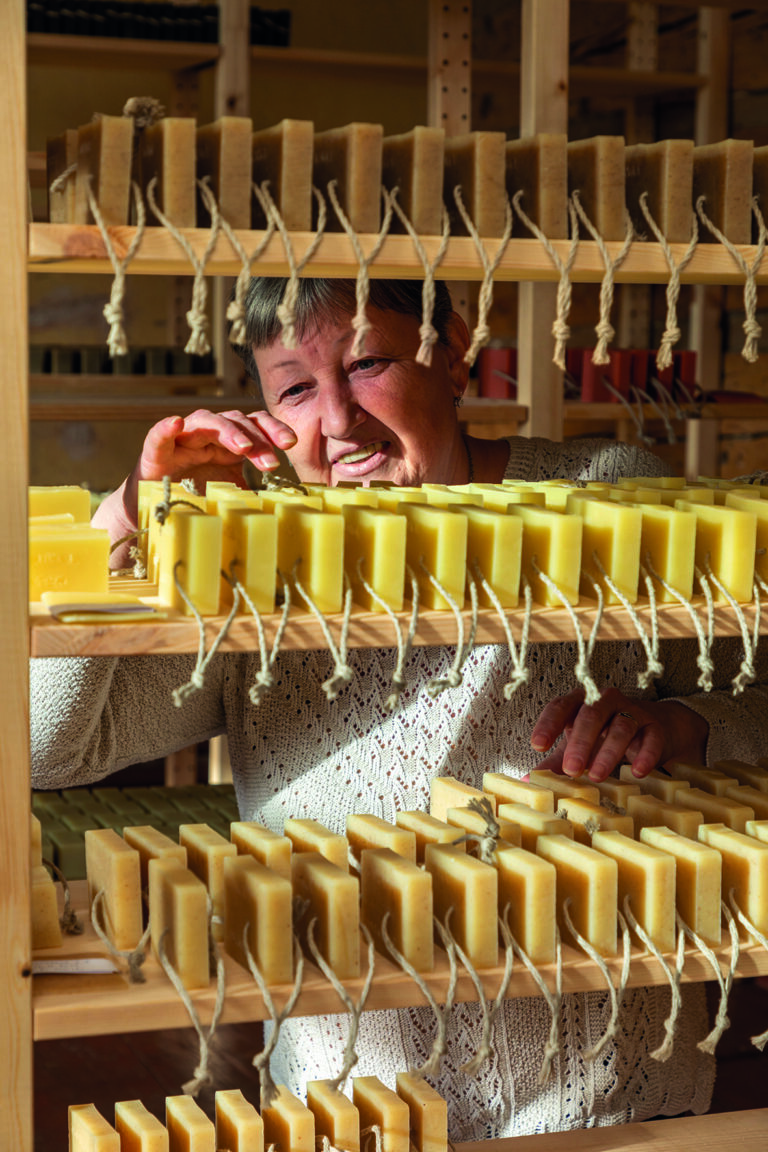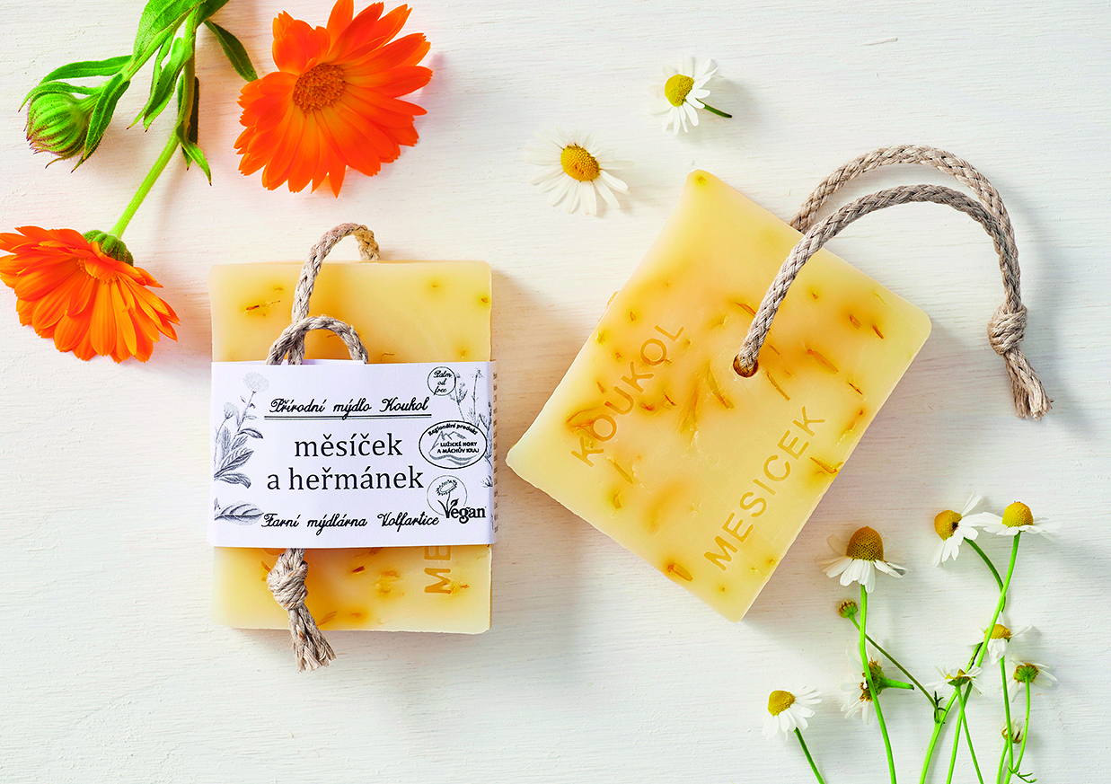Do severočeské Mýdlárny Koukol je nejlepší vypravit se v létě. Louky kolem omamně voní a hemží se to tu motýly, v budově zrenovované barokní fary, kde se provozovna nachází, však nemusíte nikoho nalézt. Ženy z mýdlárny totiž mohou zrovna sbírat byliny na přilehlých loukách, případně je rovnou kosit. Mýdlárna tedy voní celoročně: měsíčkem anebo mateřídouškou, z jejichž výluhů se vyrábějí ta nejžádanější mýdla podle unikátních receptur. V nabídce je ale i netradiční dubové či třezalkové.