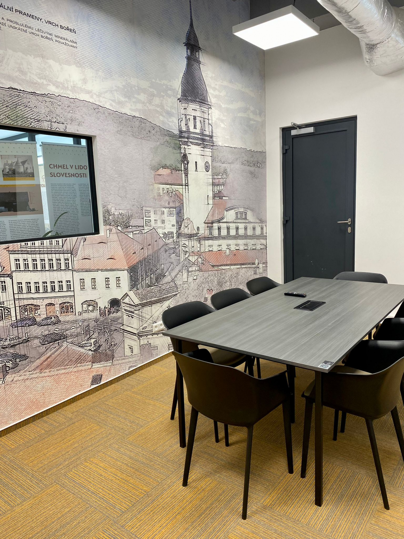 Ve spodním patře budovy se nachází tzv. Workspace – otevřený prostor pro schůzky s recepcí. V zadní straně prostoru se nachází zasedací místnost Bílina (zasedací místnosti se jmenují dle měst v Ústeckém kraji pro odlišení) – tam najdete koordinátorku SPointu Radku Wenclovou. Nápomocná všem osobám se zájmem o sociální podnikání v Ústeckém kraji je každý čtvrtek od 8:00 do 15:00. Schůzku je možné domluvit i v jiný termín, např. v prostorách kavárny.